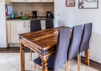 Die Villa Backstein befindet sich in zentraler Lage in der Landeshauptstadt Schwerin. Das Apartment ist 45 m² groß und besitzt 1 Schlafzimmer mit Doppelbett, 1 kleines Schlafzimmer mit Etagenbett und Schreibtisch und 1 Wohnzimmer mit der Möglichkeit für 2 Aufbettungen. Die offene Küche im Wohnzimmer mit Essbereich sowie ein Bad mit Dusche runden das Angebot ab. Für die kleinen Gäste stellen wir auf Wunsch gern ein Kinderreisebett und Hochstuhl zur Verfügung. Es handelt sich um eine Nichtraucherwohnung. Ihr Haustier ist herzlich willkommen. WLAN und ein Parkplatz vor dem Haus können Sie kostenfrei nutzen.
