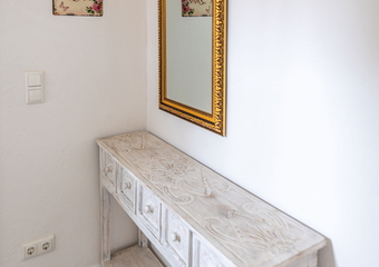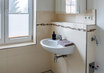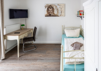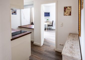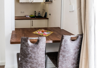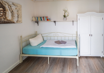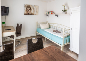 The apartment is located in the annex to Villa Backstein and is around 400 metres from the main building. The apartment is 42 m² and has 1 bedroom with a double bed, 1 living room with a sofa bed and a kitchenette, as well as a bathroom with shower. We would be happy to provide a travel cot and high chair for our young guests if desired. The apartment is non-smoking. Your pet is very welcome. You can use one parking space by the main building on Obotritenring free of charge.
