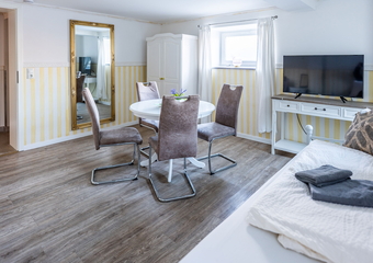 The Villa Backstein is situated in a central location in the state capital of Schwerin and offers an apartment with an area of 40 m² that can accommodate up to 5 people. The accommodation features three rooms: a double room, a twin room, and a single room, as well as a kitchenette and a bathroom with shower. On request, we are happy to provide a travel cot and high chair for our younger guests. This is a non-smoking apartment. Your pet is warmly welcomed. Wi-Fi and a parking space in front of the house are available free of charge.